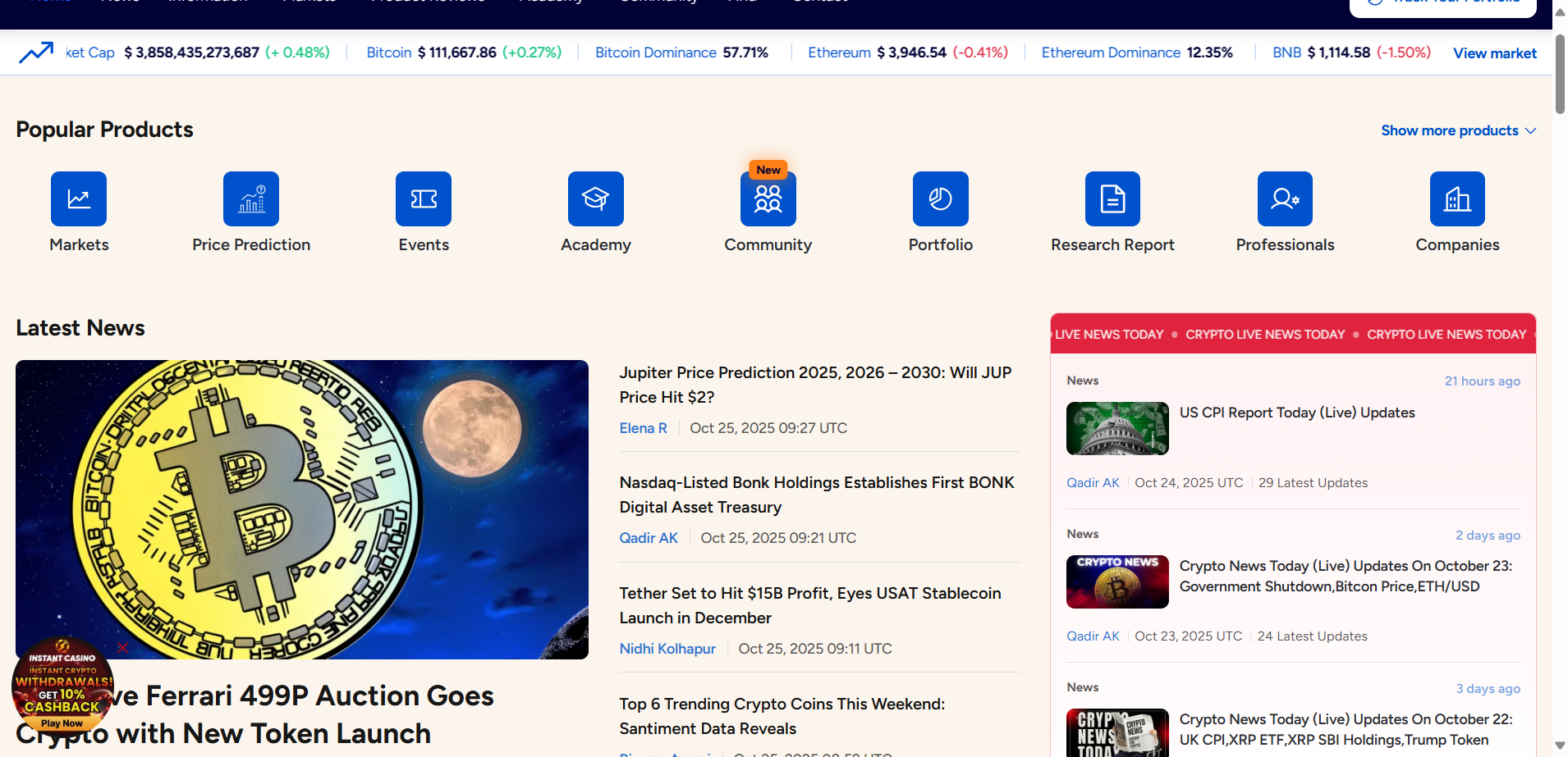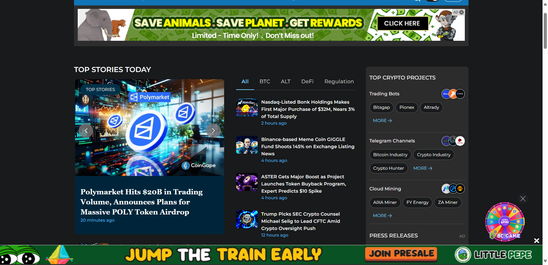 Crypto news sites